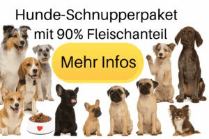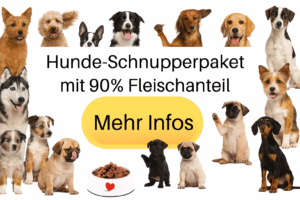 Wenn man statt den 200 Gramm* Dosen 6 große 810 Gramm Dosen* für 34,49 € kauft, dann reicht es für ca. 23 Tage. Das Futter hält 3 Tage im Kühlschrank und man kann es auch portionsweise einfrieren. So kann man seinen geliebten Hund für ca. 1,50 € pro Tag wirklich gesund und artgerecht ernähren. Es ist am besten, wenn das Futter lebenslang gefüttert wird. Langfristig kann man gut sparen mit dem 6-er Pack mit 6 Dosen* und kommt so auf günstige 71 Cent pro 100 Gramm Futter. Für Stammkunden gibt es für zusätzliche Einsparung den dauerhaften Rabattgutschein „HUNDEGESUND“. Um herauszufinden welche Lieblingssorten Dein Hund hat, lohnt sich das Schnupperpaket auf der Webseite samtohr.com*: